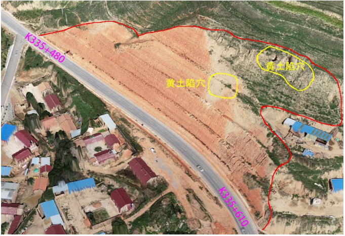 项目区黄土覆盖面积大,沟壑发育,植被覆盖率小于 40%,再加上雨季暴雨较多且集中,多易形成地表洪流携带大量泥沙,水土流失严重。边坡坡体排水系统不发达导致排水不畅,雨水冲击坡面造成黄土陷穴、路基沉陷等,对边坡稳定造成较大安全隐患。
