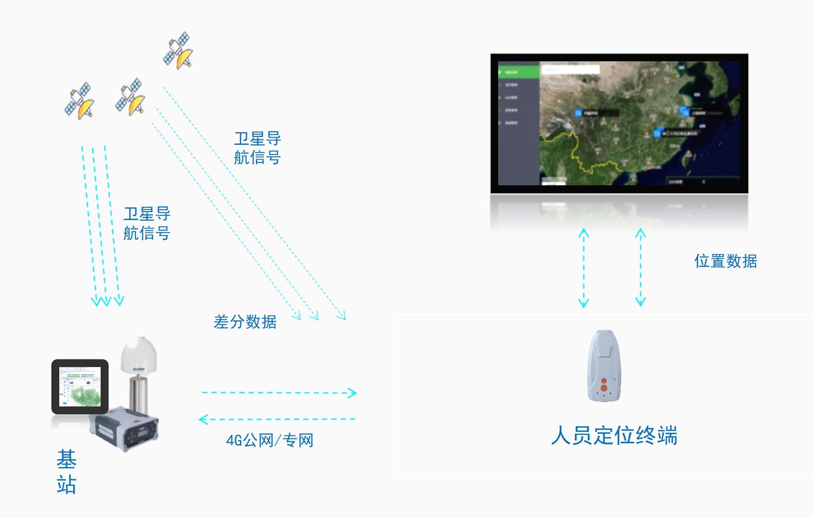 ● 司南人员安防平台接收到位置信息后,进行高精度位置解算,达到厘米级定位的效果,最终可实现远程管理、救援管理、电子围栏、考勤查漏等功能;
