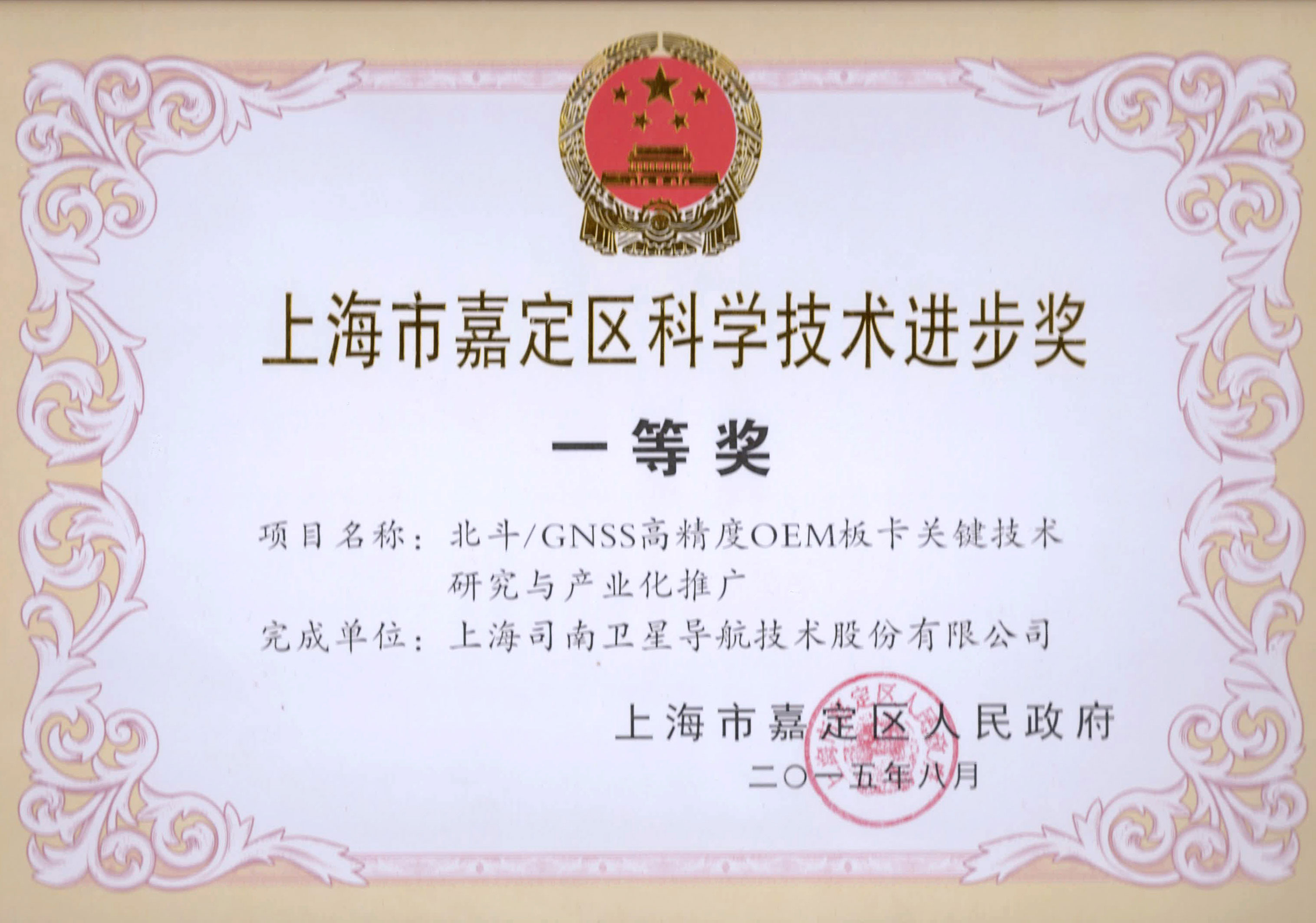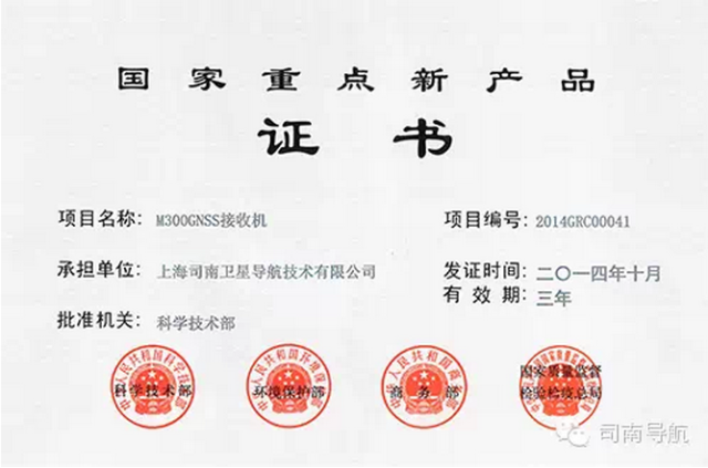2016年04月在北斗/GNSS高精度OEM板卡关键技术与产业化应用项目鉴定会上,专家鉴定委员会鉴定司南导航北斗/GNSS高精度OEM板卡关键技术达到国际先进水平。