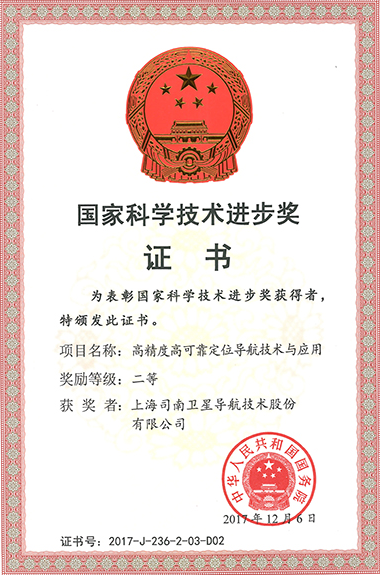 2018年01月司南导航主要参与的“高精度高可靠定位导航技术与应用”项目荣获国家科技进步二等奖。