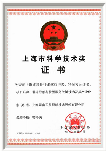 2017年03月公司参与完成的“北斗导航与位置服务关键技术及其产业化”项目荣获上海市科技进步奖特等奖。