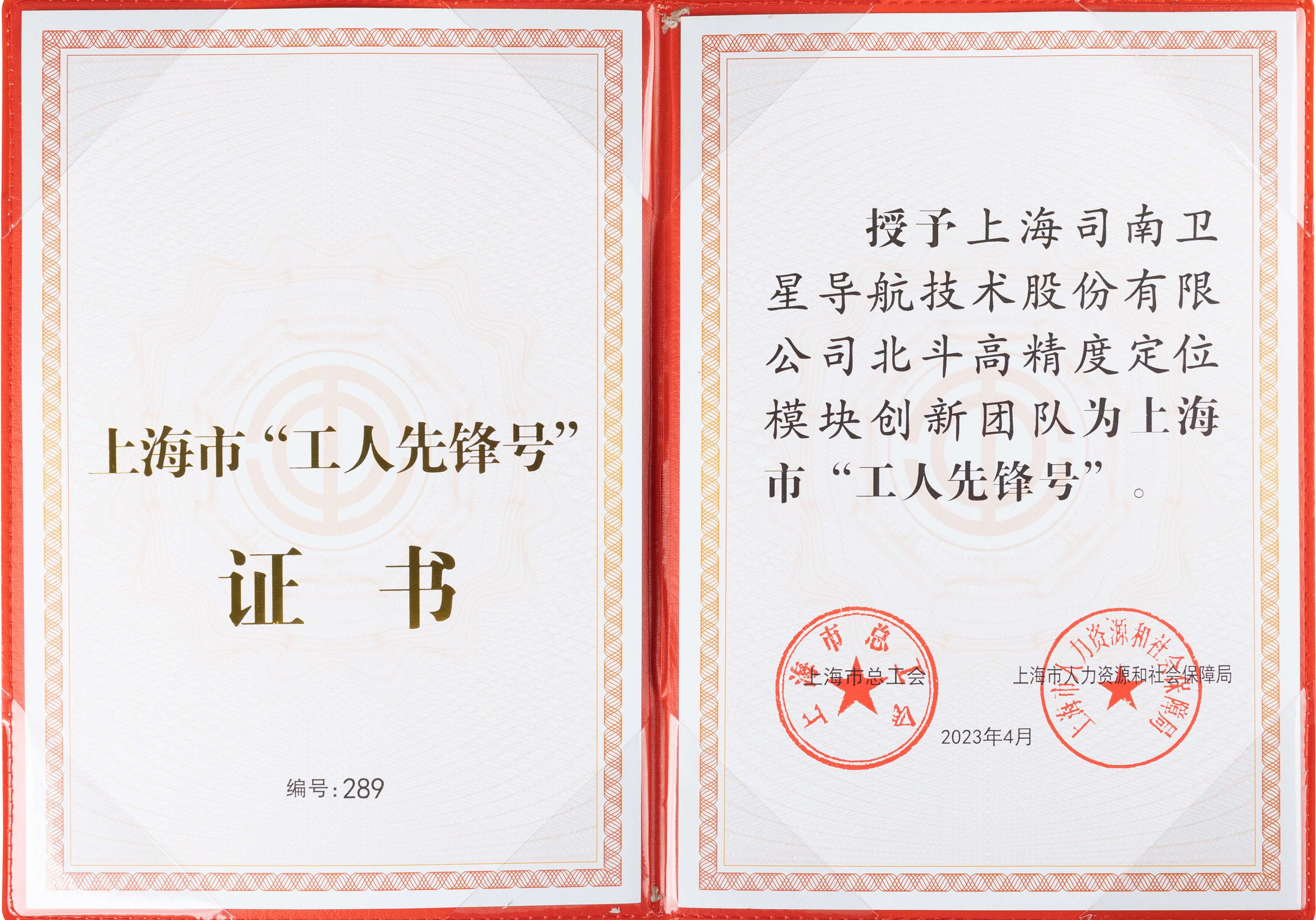 2023年05月司南北斗高精度定位模块创新团队作为公司高精度北斗/GNSS技术创新的核心团队,荣获2023年上海市工人先锋号。