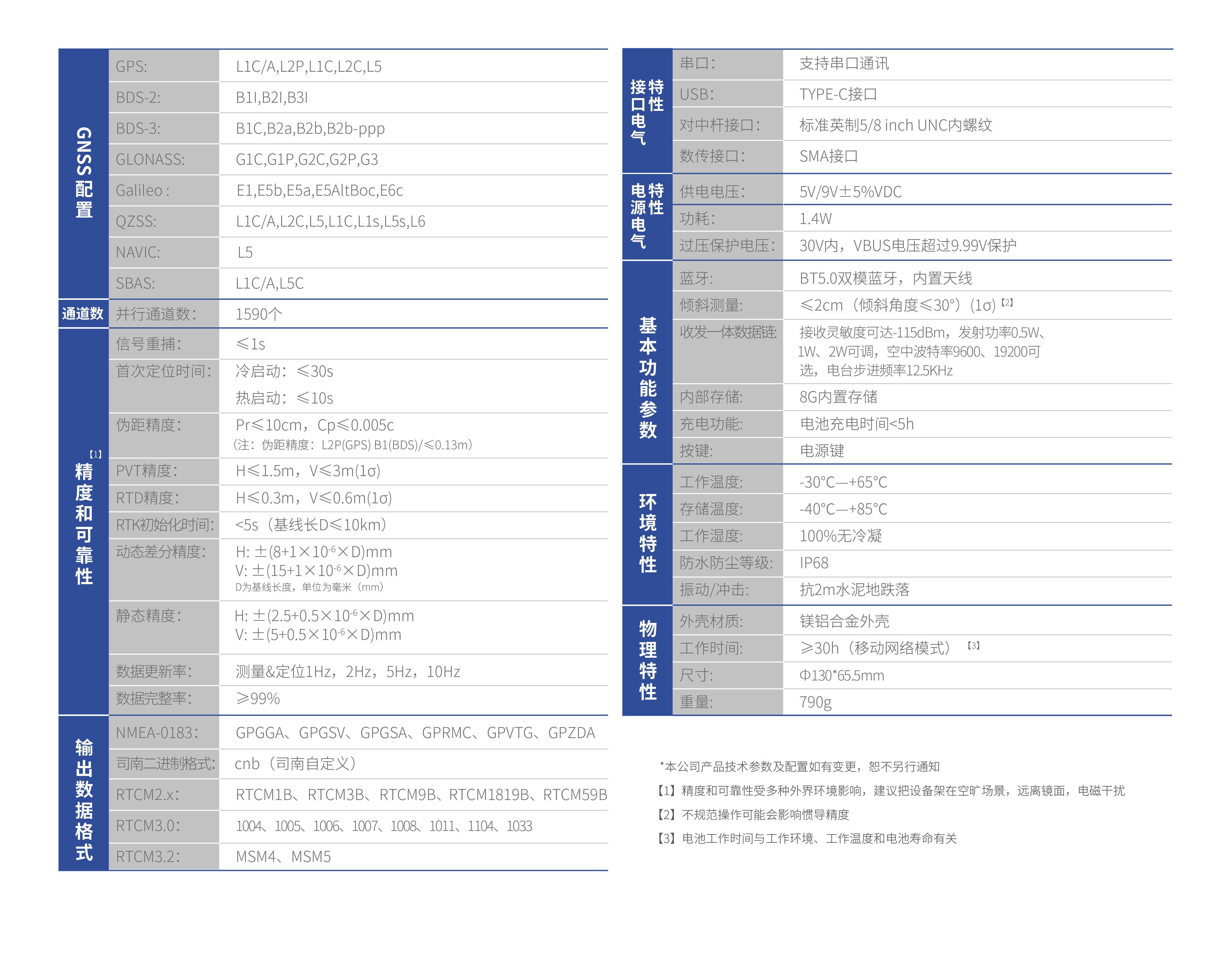 司南导航推出的全功能小型化RTK。全新北斗高精度SOC芯片,采用40nm低功耗工艺,显著提升复杂环境下的定位精度和可靠性。整机设计轻盈小巧,重量只有790g;采用采用低剖面、轻量化、小型化、全网通高精度组合测量天线体积小,信号强;搭载三代惯导技术,5s初始化,60%倾斜测量,测量高效便捷,是您的工地好搭档。